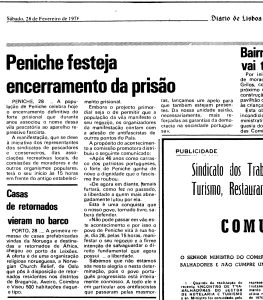Peniche festejou o encerramento da prisão, diante do portão principal da fortaleza, animada pela banda da Atouguia da Baleia pelas sirenes das fábricas e dos barcos de pesca.”